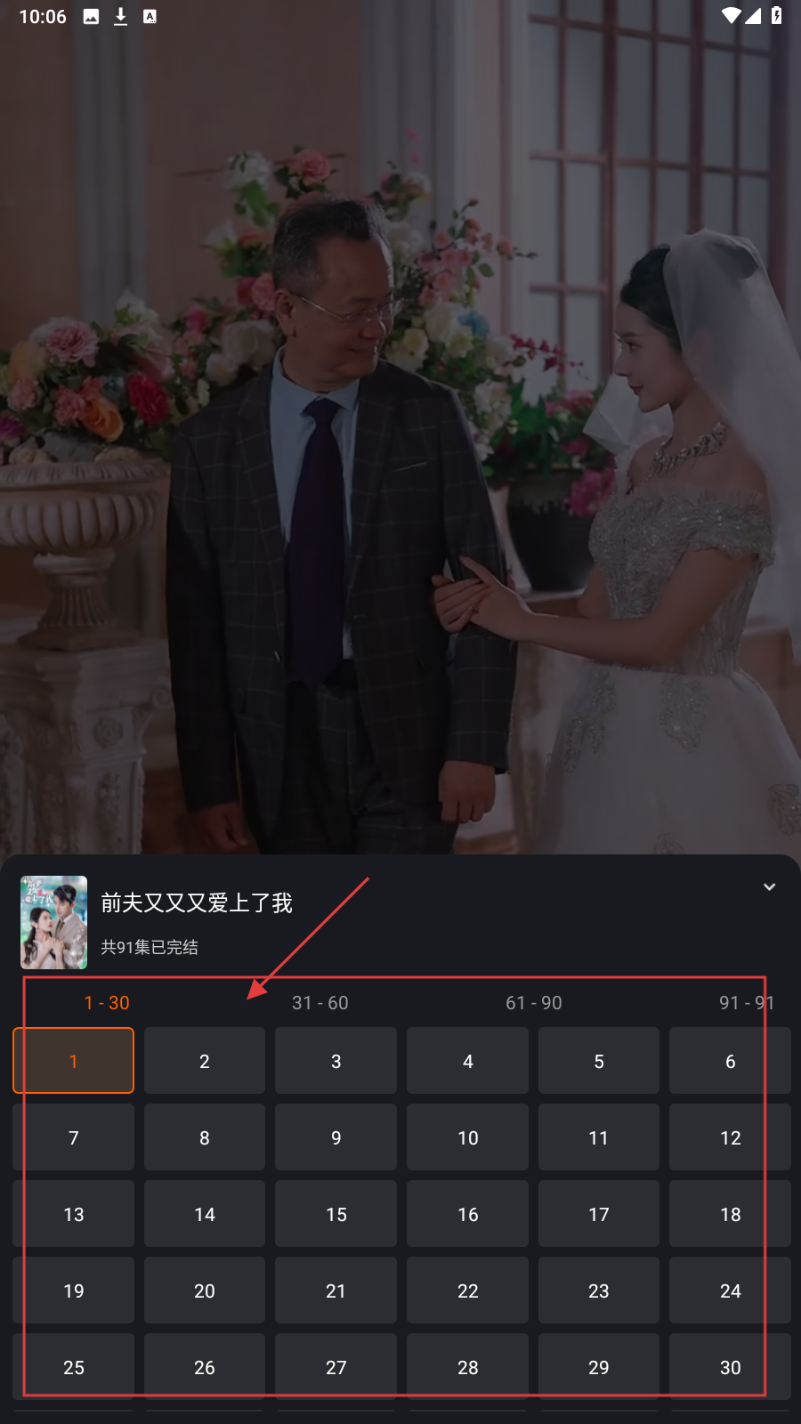 2、进入短剧播放页面进行观看,点击下方剧集栏。