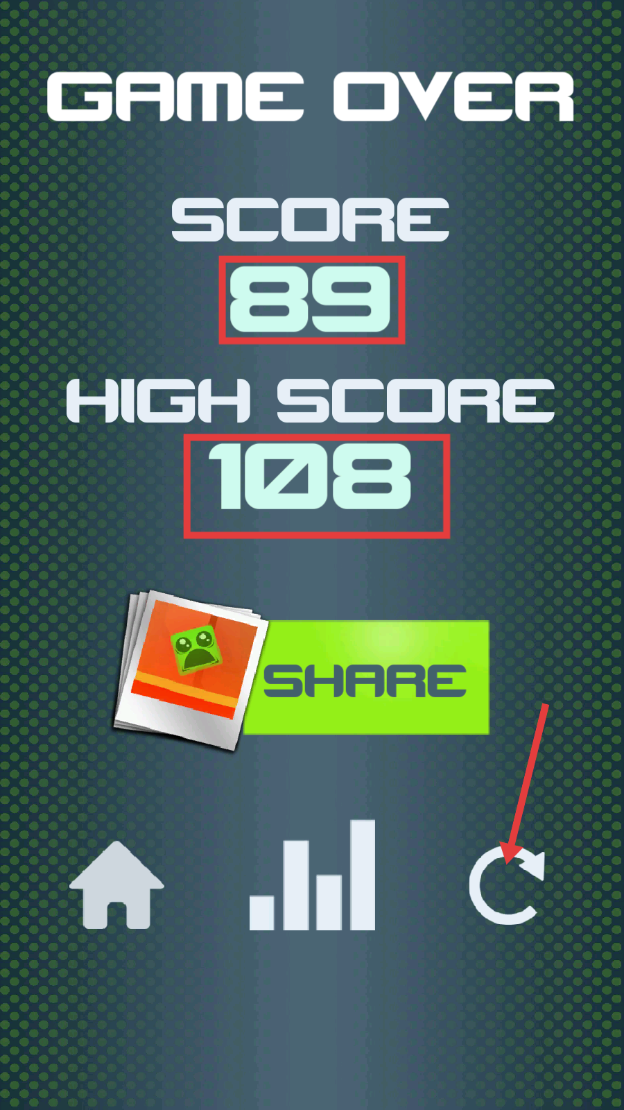 4、若游戏失败,可查看本次分数和最高分,点击重新开始按钮,争取突破之前的最高分数。