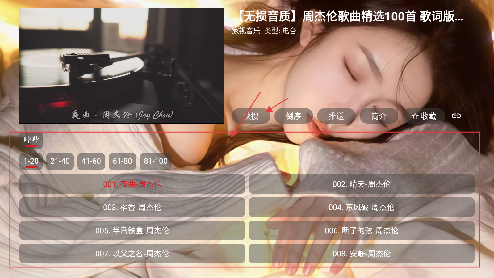 3、进入播放页面,在下方选择想听的歌曲点击播放。
