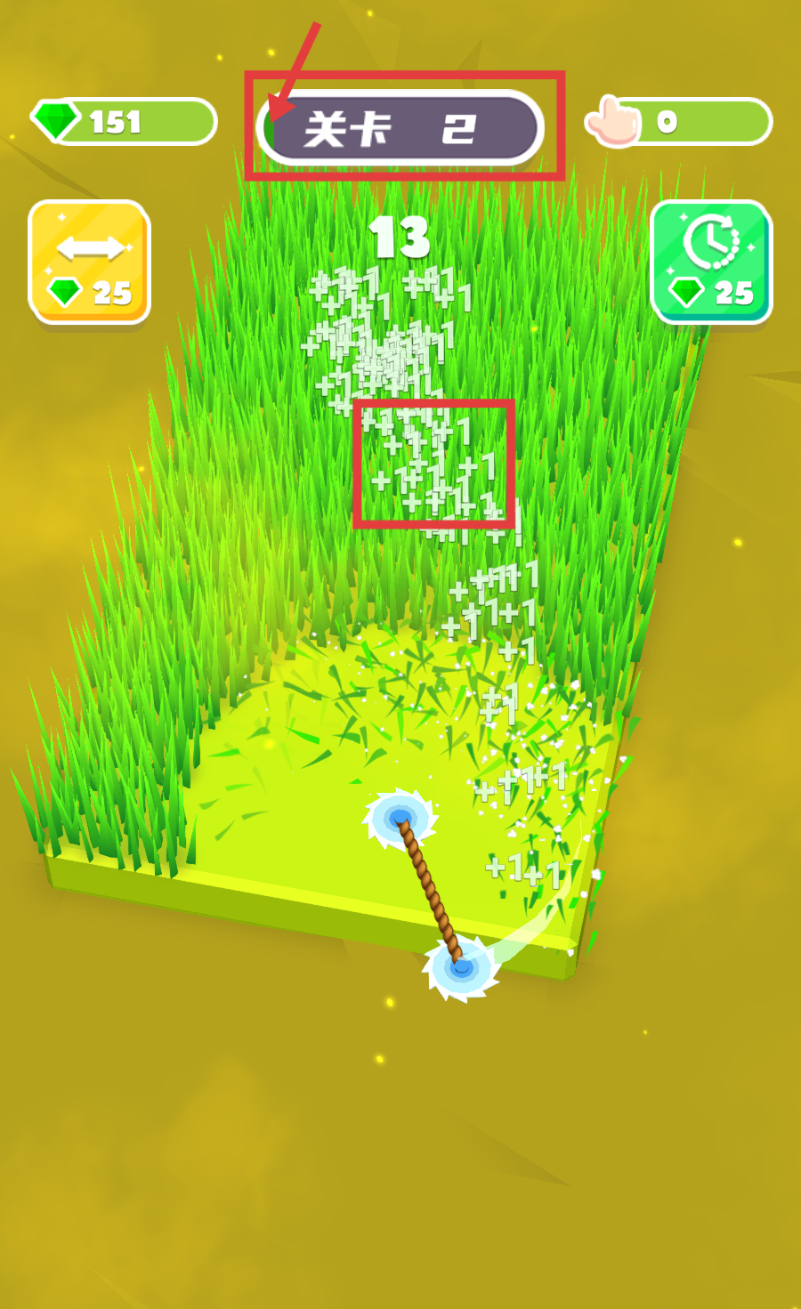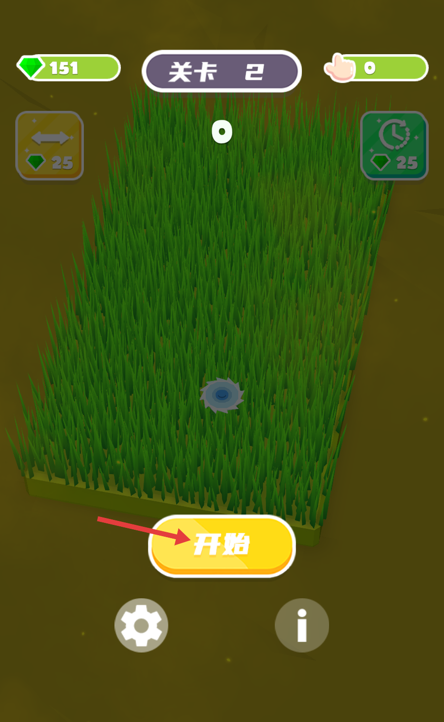 1、点击【开始】按钮进入游戏,开启后即可进入关卡场景开始割草挑战。