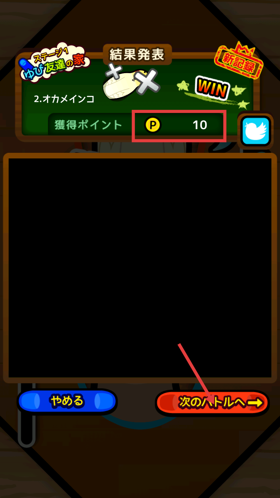 4、战斗结束后,可查看获得的积分(P)和胜利情况,点击“次のバトルへ→”可进入下一场战斗。