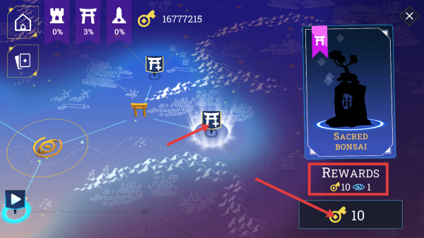 1、在地图界面选择带有播放按钮标识的关卡,查看奖励信息后进入解谜场景。