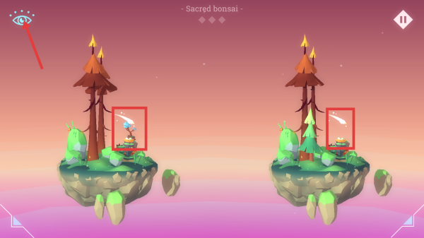 3、点击左上角【眼睛】图案,场景中会出现亮点用来提示我们两岛的差异。