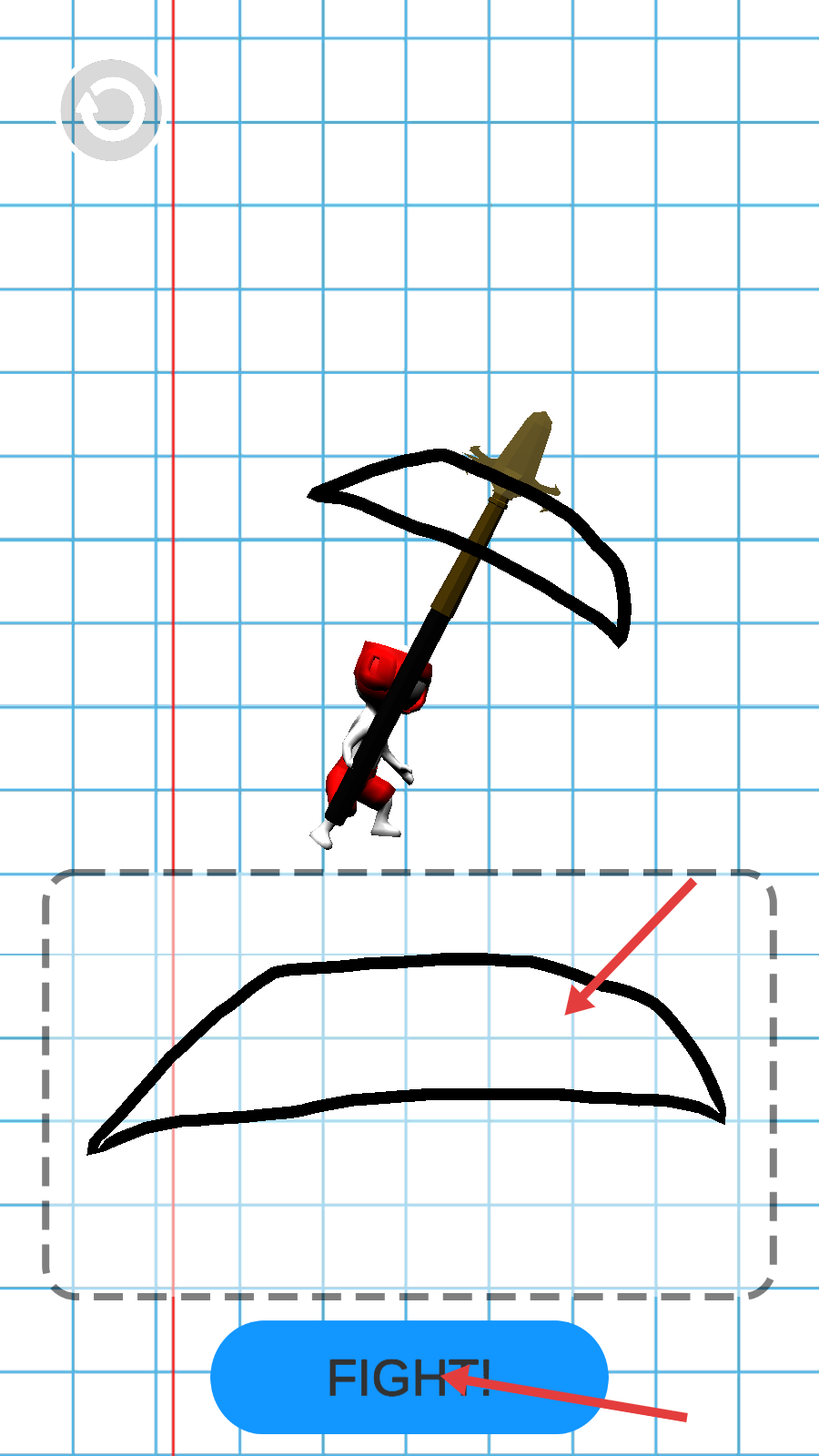 2、根据提示在指定区域绘制武器,绘制完成后点击“FIGHT!”进入战斗。