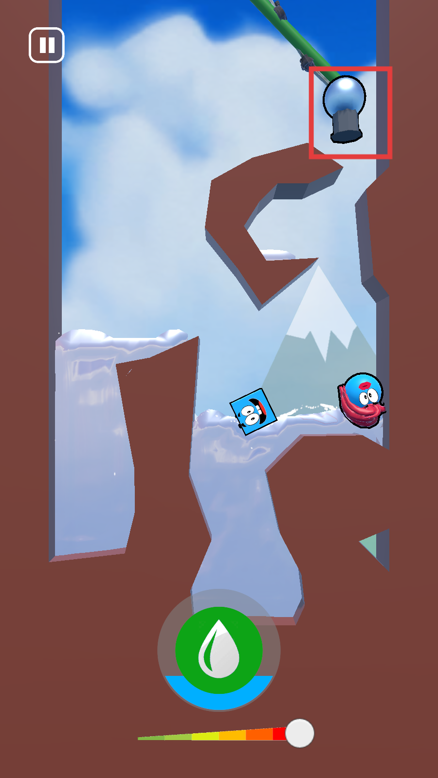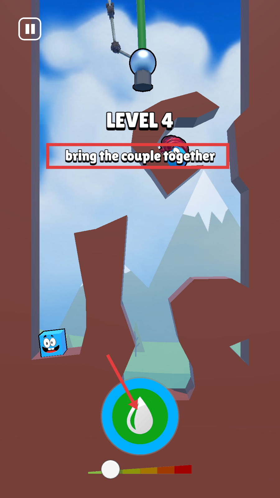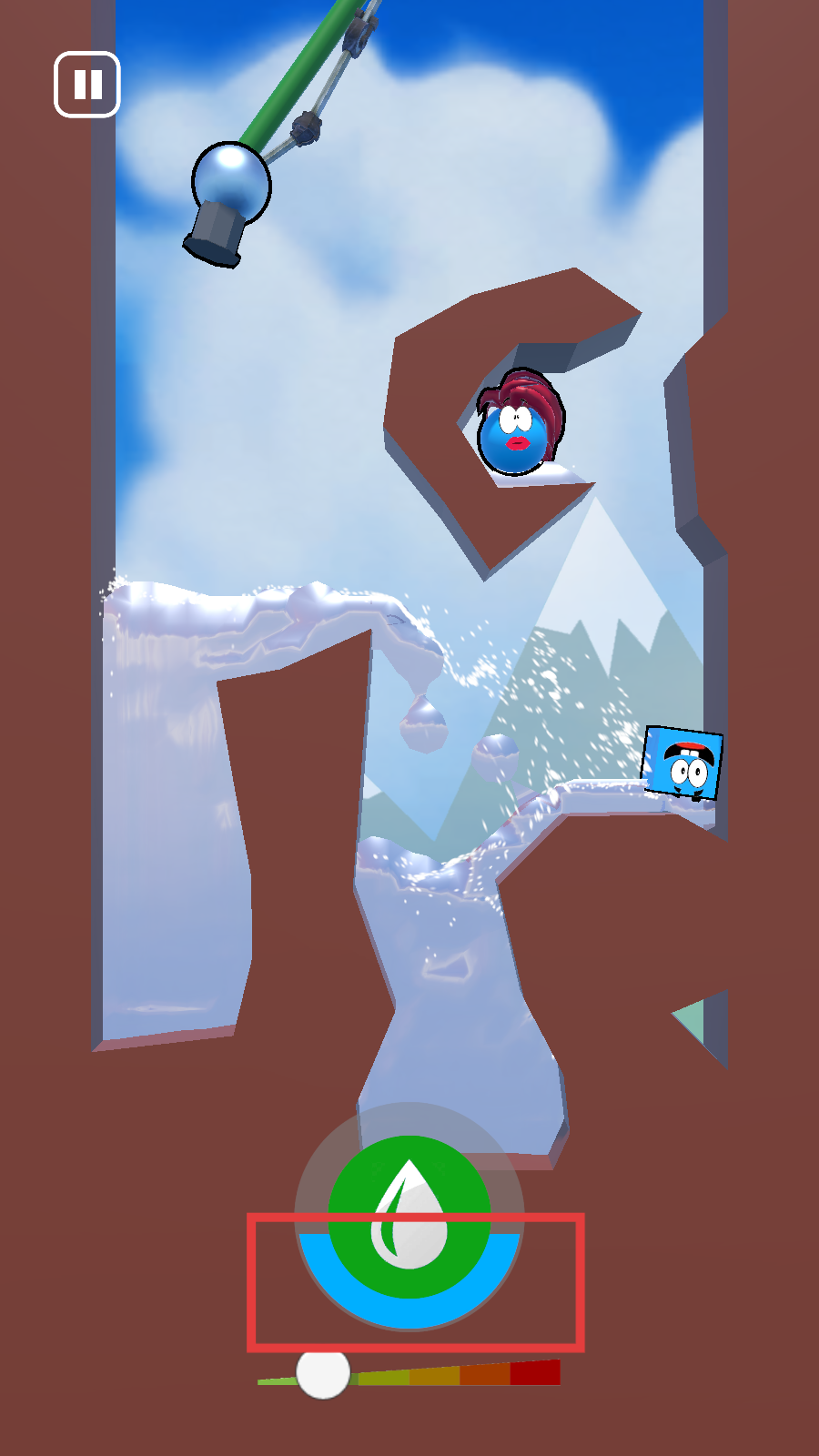 3、注意观察场景中的地形和障碍物,可以滑动屏幕,改变机器的方向喷水,可以加快两个角色相遇。