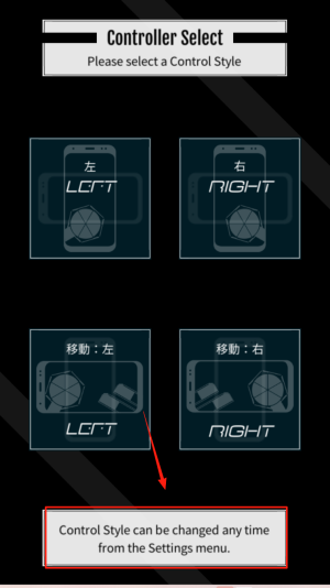 4、在“Controller Select”界面,选择左侧或右侧控制方式,点击“左”或“右”确认,后续可在设置中随时更改。