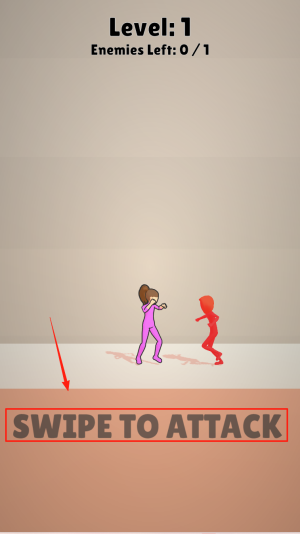 1、进入战斗,看到“Level: 1 Enemies Left:1/1”后按提示“SWIPETOATTACK”滑动屏幕发起首次攻击。