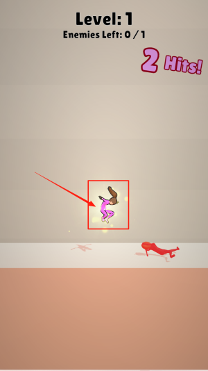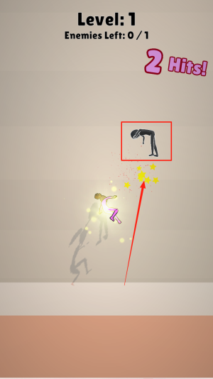 2、敌人被击败,画面变为“EnemiesLeft:0/1”并显示“2 Hits!”,确认已造成2次有效打击。
