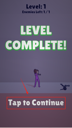 4、出现“LEVEL COMPLETE! Tap to Continue”时,轻触屏幕即可结束第1关并进入下一界面。