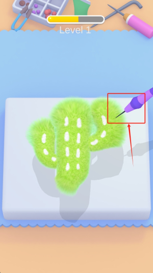 2、按提示制作:跟着游戏的提示步骤制作,用回针穿刺毛毡,一步步塑造玩具形状,提示引导下,制作过程顺畅,不会偏离方向,很顺利。