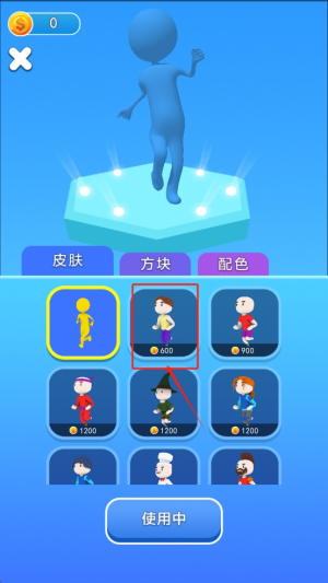 4、在商店中使用收集到的金币购买新皮肤,点击想要的皮肤,然后点击“使用中”进行更换。