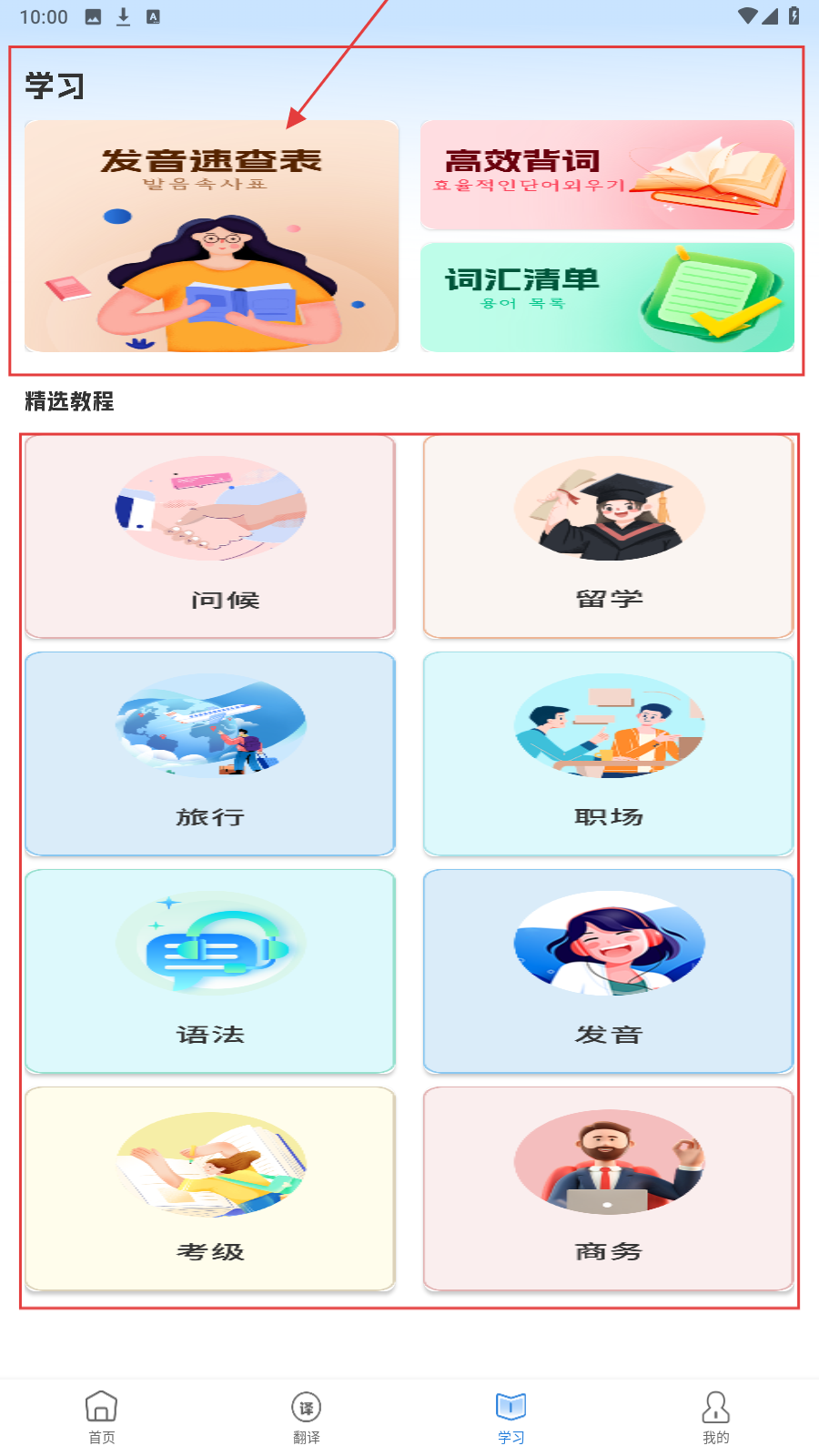 2、多场景学习模式:涵盖日常对话、商务谈判、旅游出行等10+场景分类,提供模拟对话与实用例句,帮助用户在真实场景中灵活运用韩语。