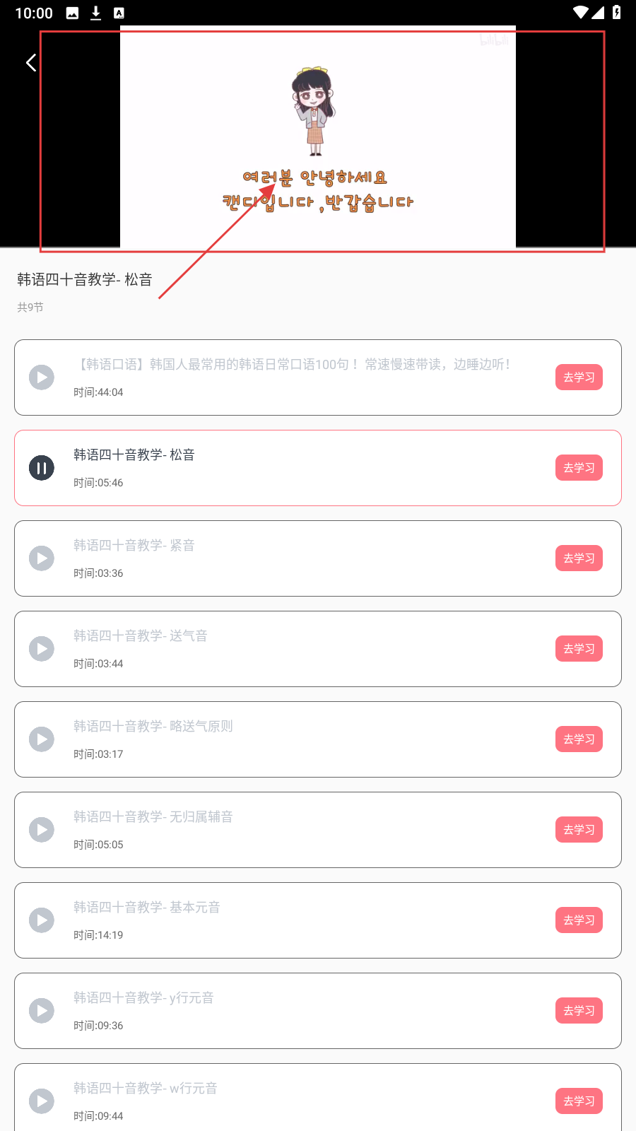3、学习课程时,留意视频里的韩语语句,借助内容加深发音理解。