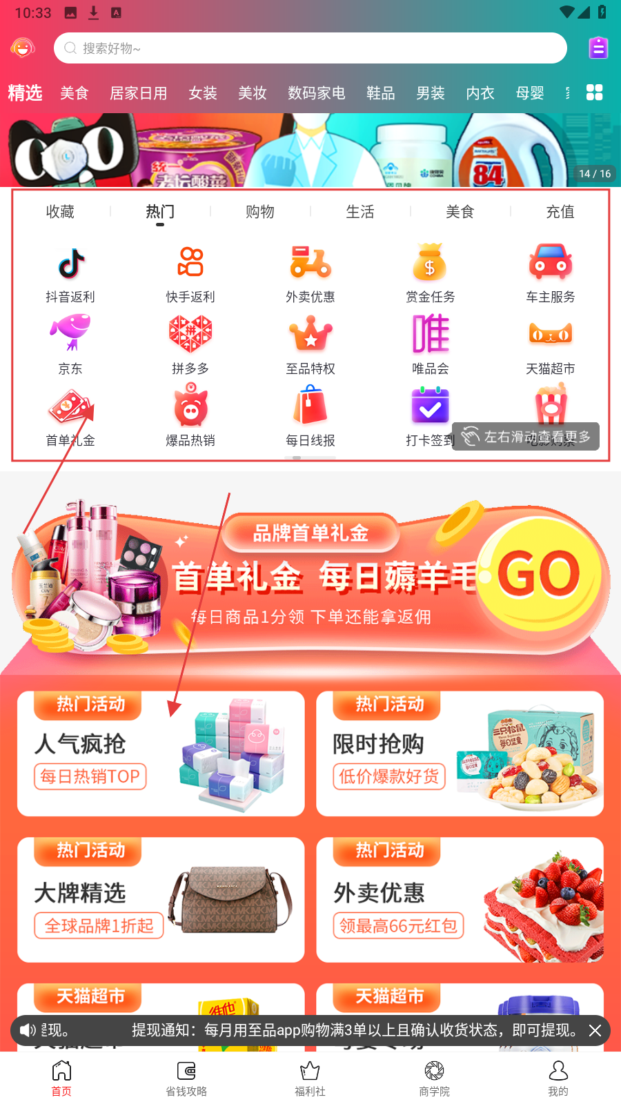 一款聚合海量高性价比商品的电商导购平台。