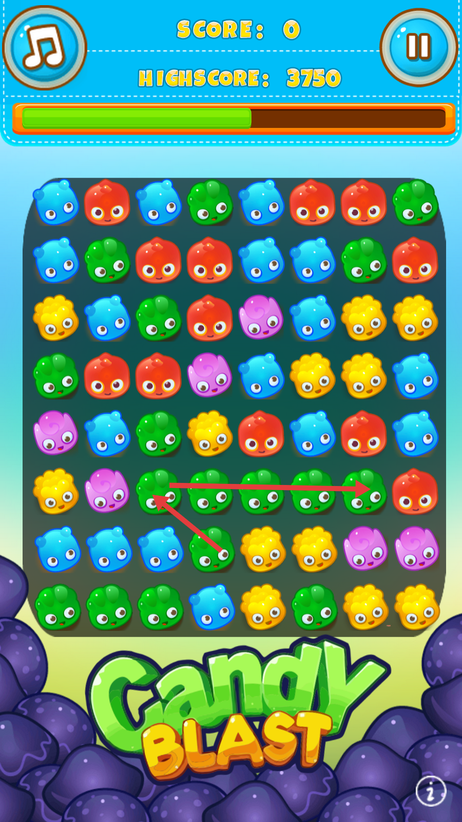 2、寻找相同颜色的糖果,将它们连接起来进行消除,获取分数。