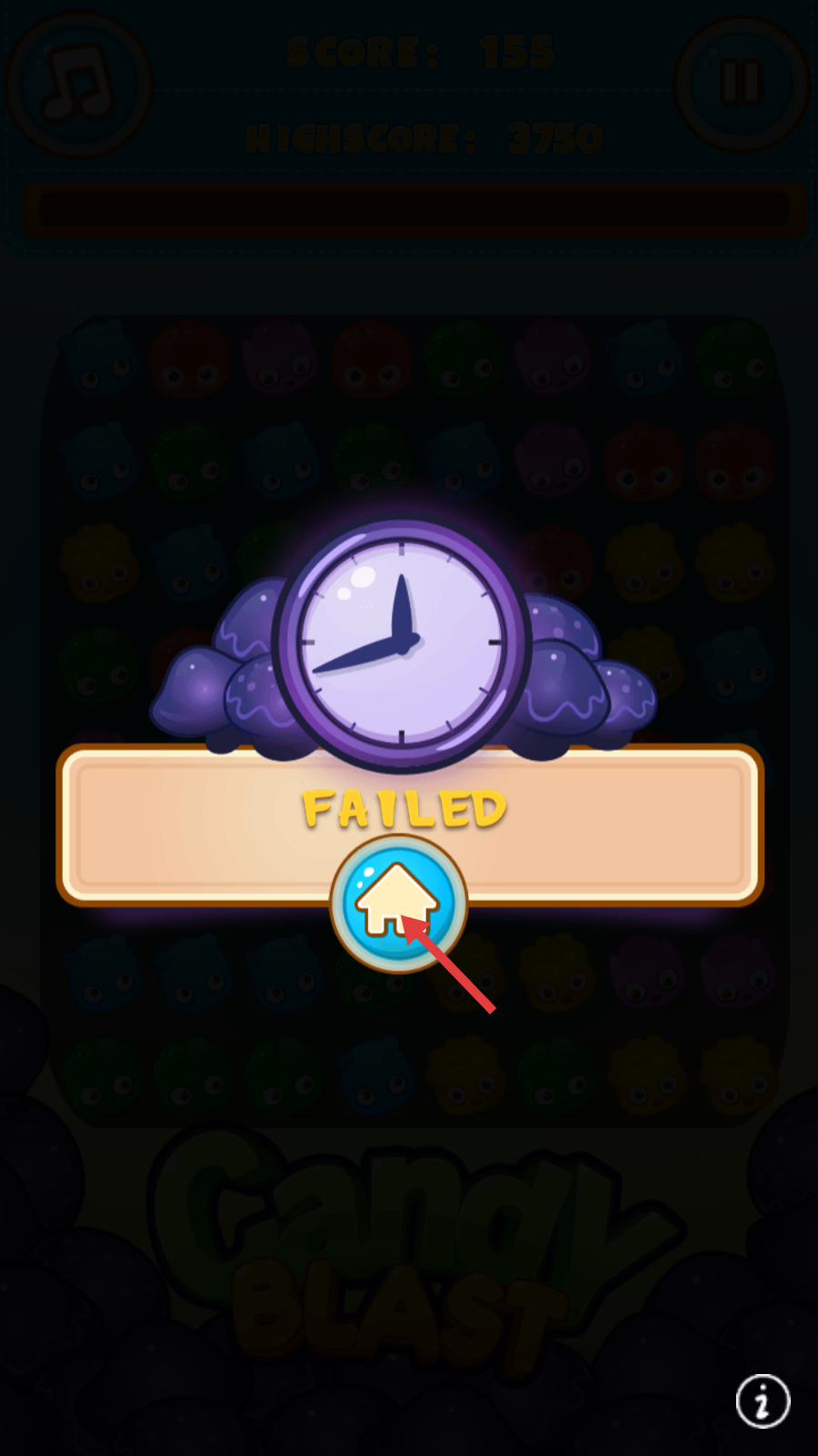 4、如果游戏失败,点击返回按钮,重新开始游戏,继续挑战,争取更好成绩。