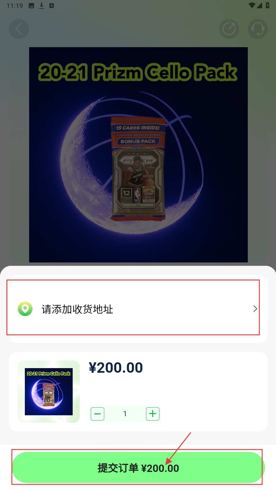 3、在购买弹窗中添加收货地址,确认无误后点击【提交订单】即可购买。