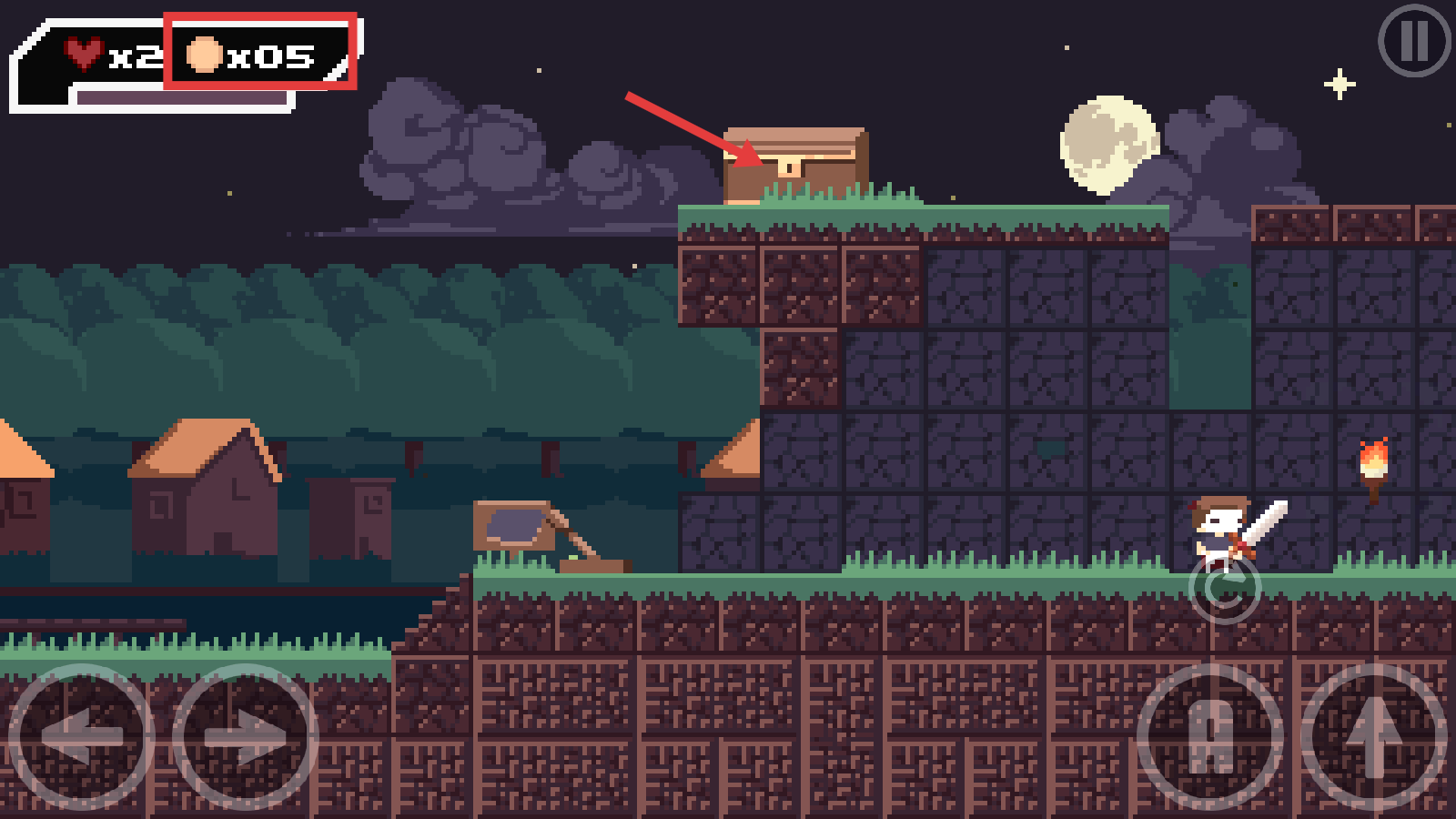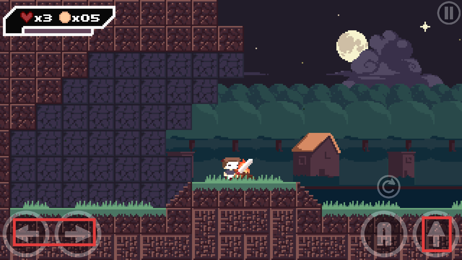 2、利用左右移动按钮控制角色移动,点击向上按钮使角色跳跃,跨越障碍。