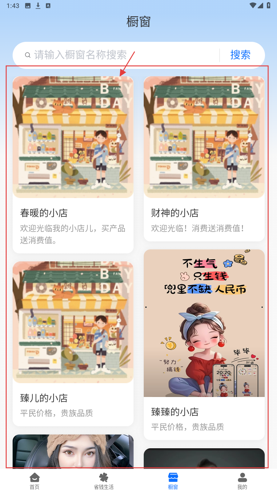 1、进入【橱窗】界面,筛选心仪店铺(如【春暖的小店】),点击进入。