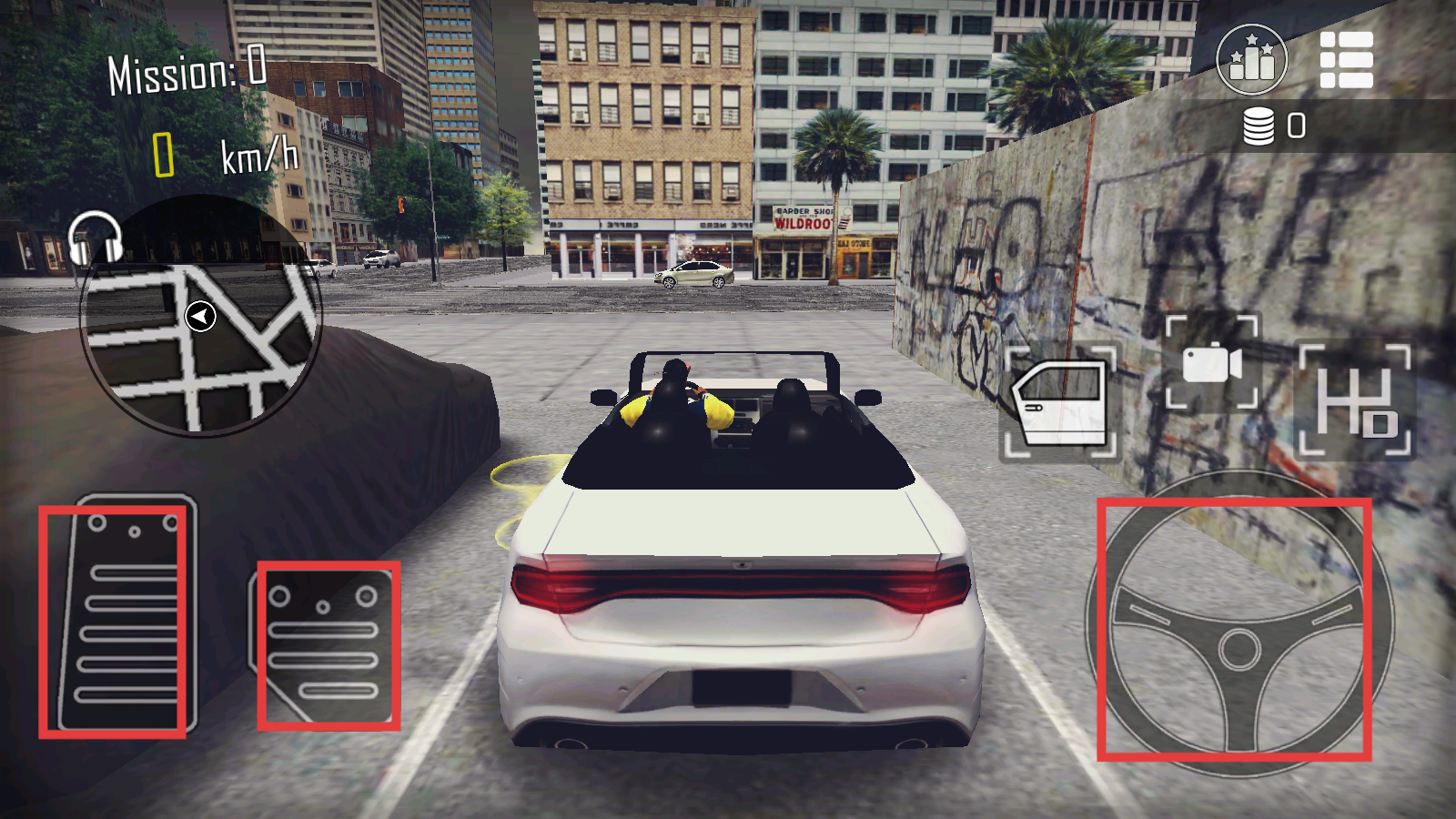 3、利用油门、刹车按钮控制车速,通过方向盘按钮调整车辆行驶方向。