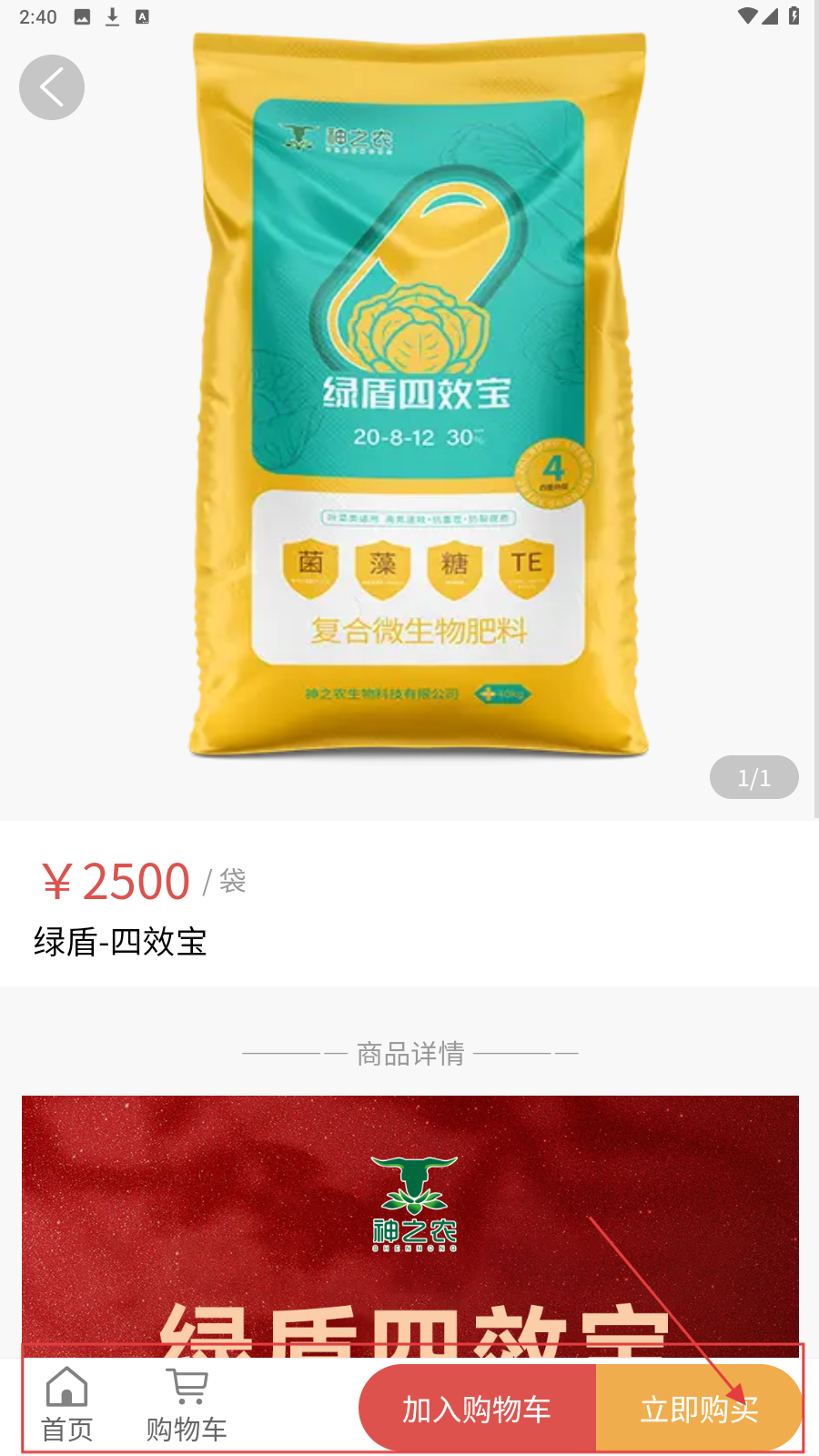1、进入APP【商城】页,选【绿盾-四效宝】商品,进入详情页。