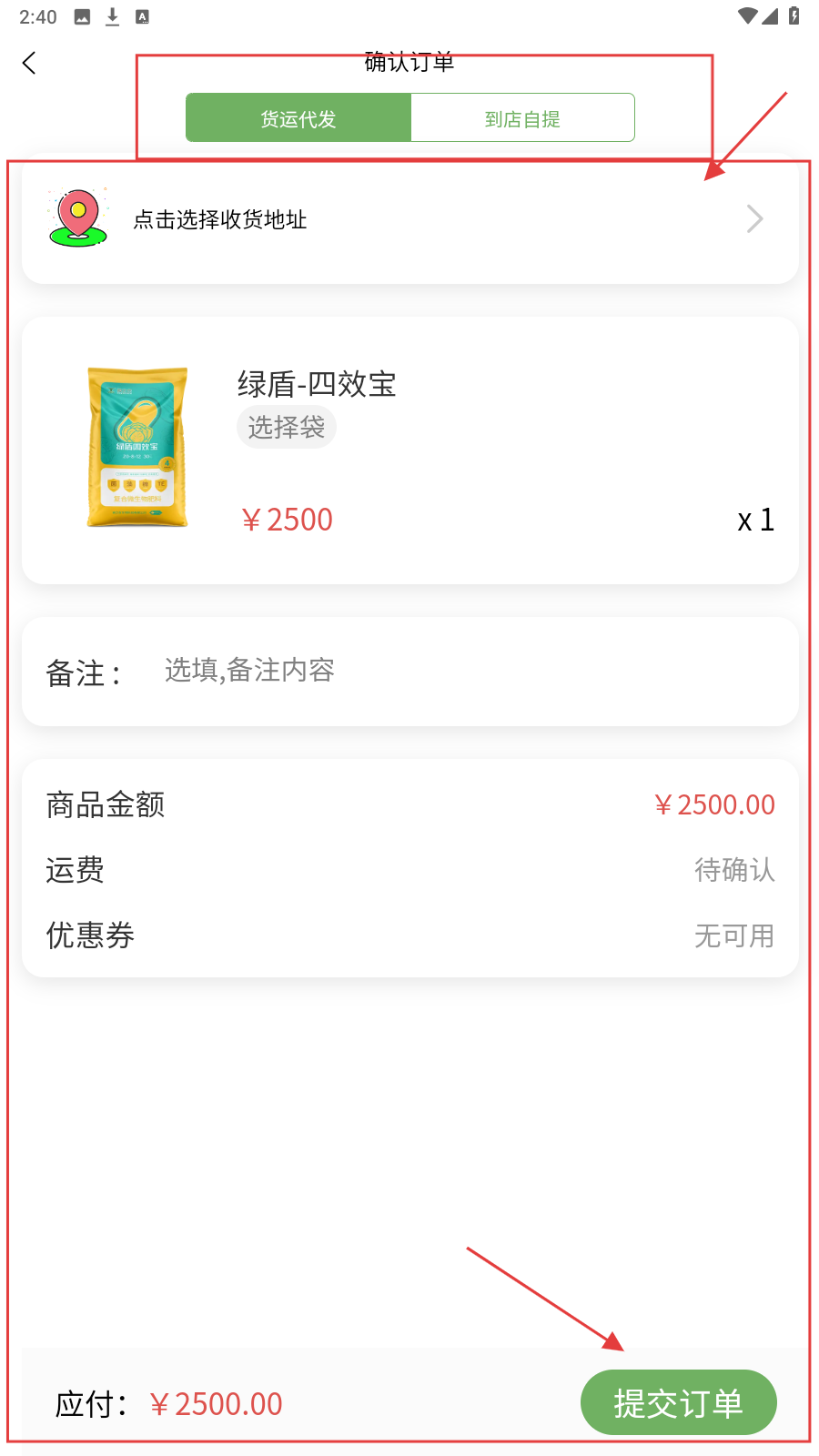 4、订单页选收货方式、填地址,点【提交订单】完成购买。