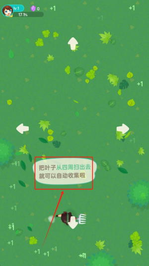 3、收集树叶:把叶子从四周扫出去就可以自动收集啦,收集树叶以获取积分。
