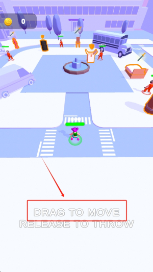 1、学习基本操作:拖动角色移动,松开手指进行投掷。