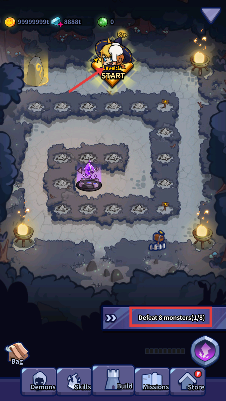 1、点击【START】按钮,开始游戏,根据任务要求,击败指定数量的怪物。