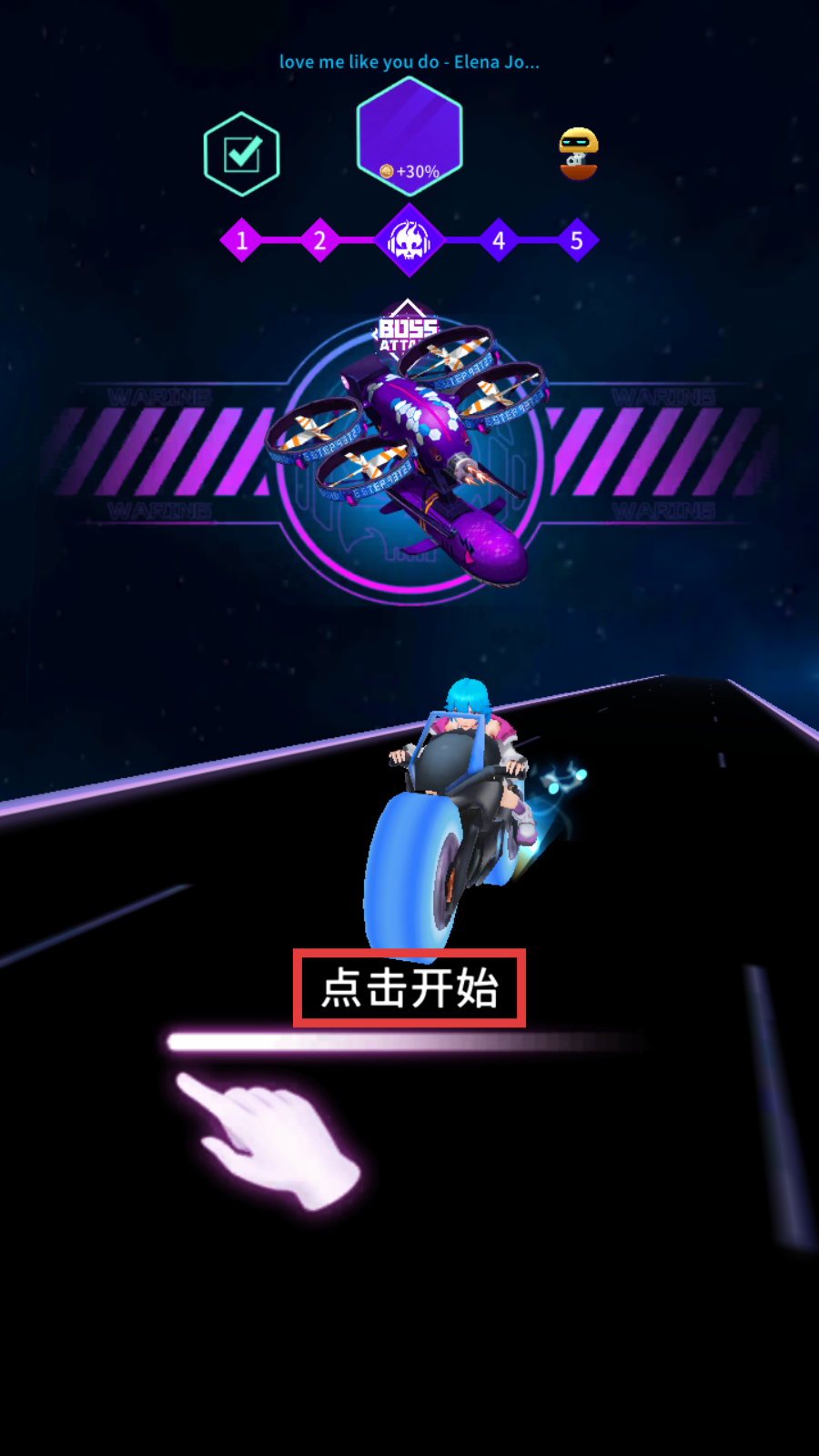 1、点击【点击开始】按钮,进入游戏,开始音乐竞速挑战。