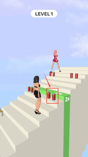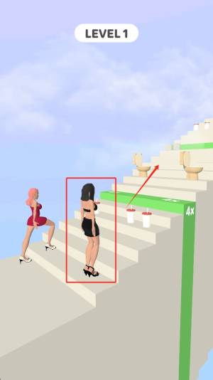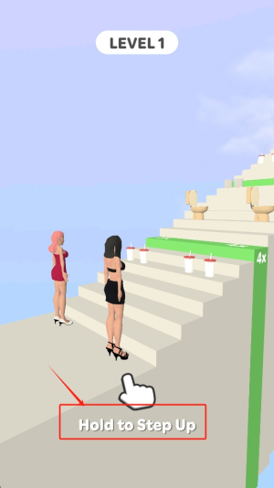 1、控制步伐前进:进入游戏,点击屏幕控制小姐姐的步伐,长按跳得远,短按迈得小,根据楼梯间距调整点击时长,平稳前进避免失误。