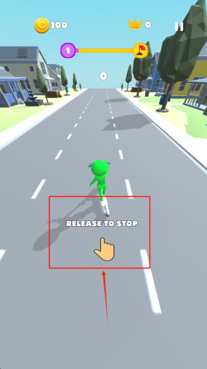 1、滑动屏幕以控制角色移动,避开障碍物。