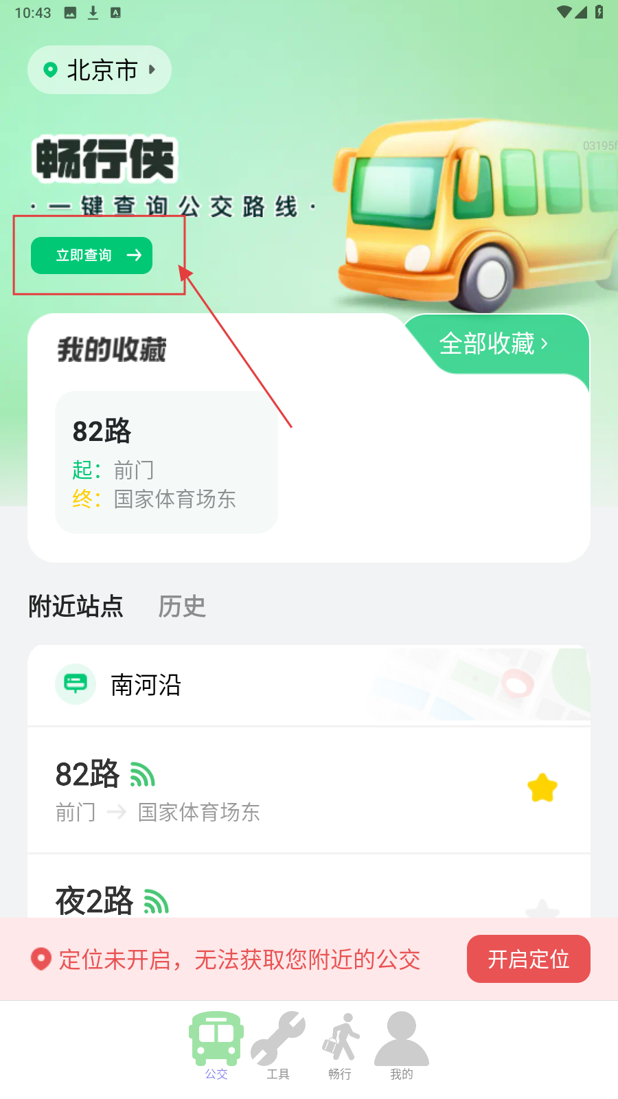 1、打开应用,在应用【公交】页面点击【立即查询】按钮。