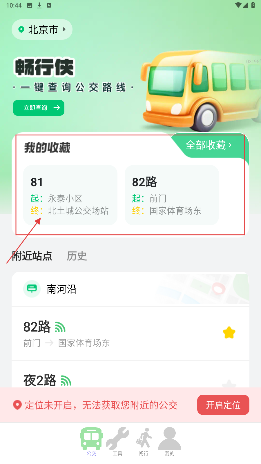 4、收藏后即可在【我的收藏】中查看常用线路。