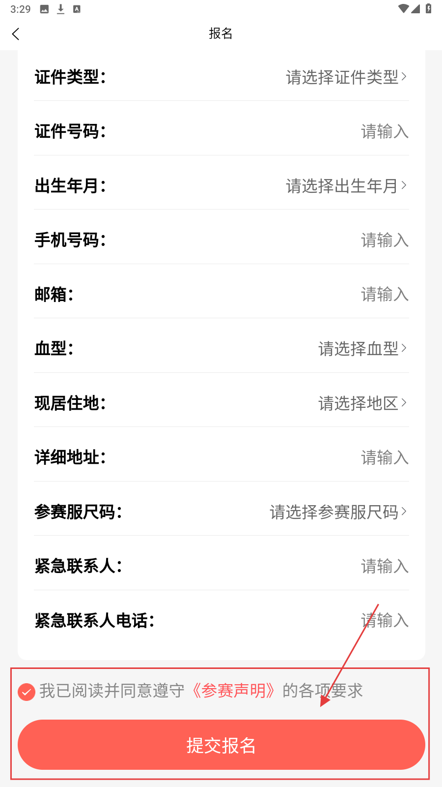 4、填完所有信息,勾选同意声明,点【提交报名】,完成活动报名。