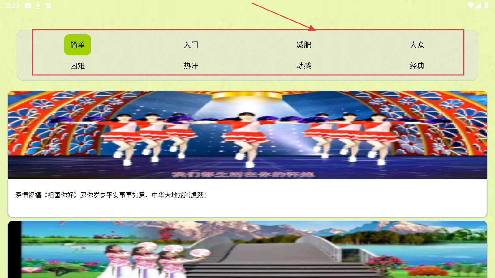 1、首页选【广场舞跟练】,进入广场舞分类页,找感兴趣舞蹈。