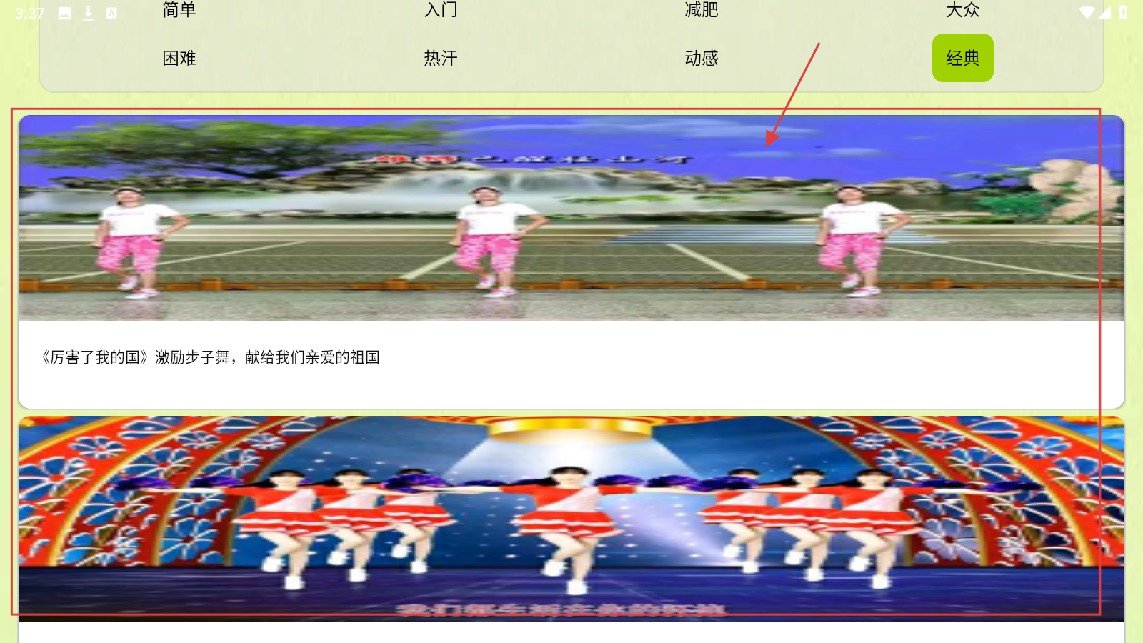 2、在分类页,按需求点标签(如【经典】),筛选对应风格广场舞视频。