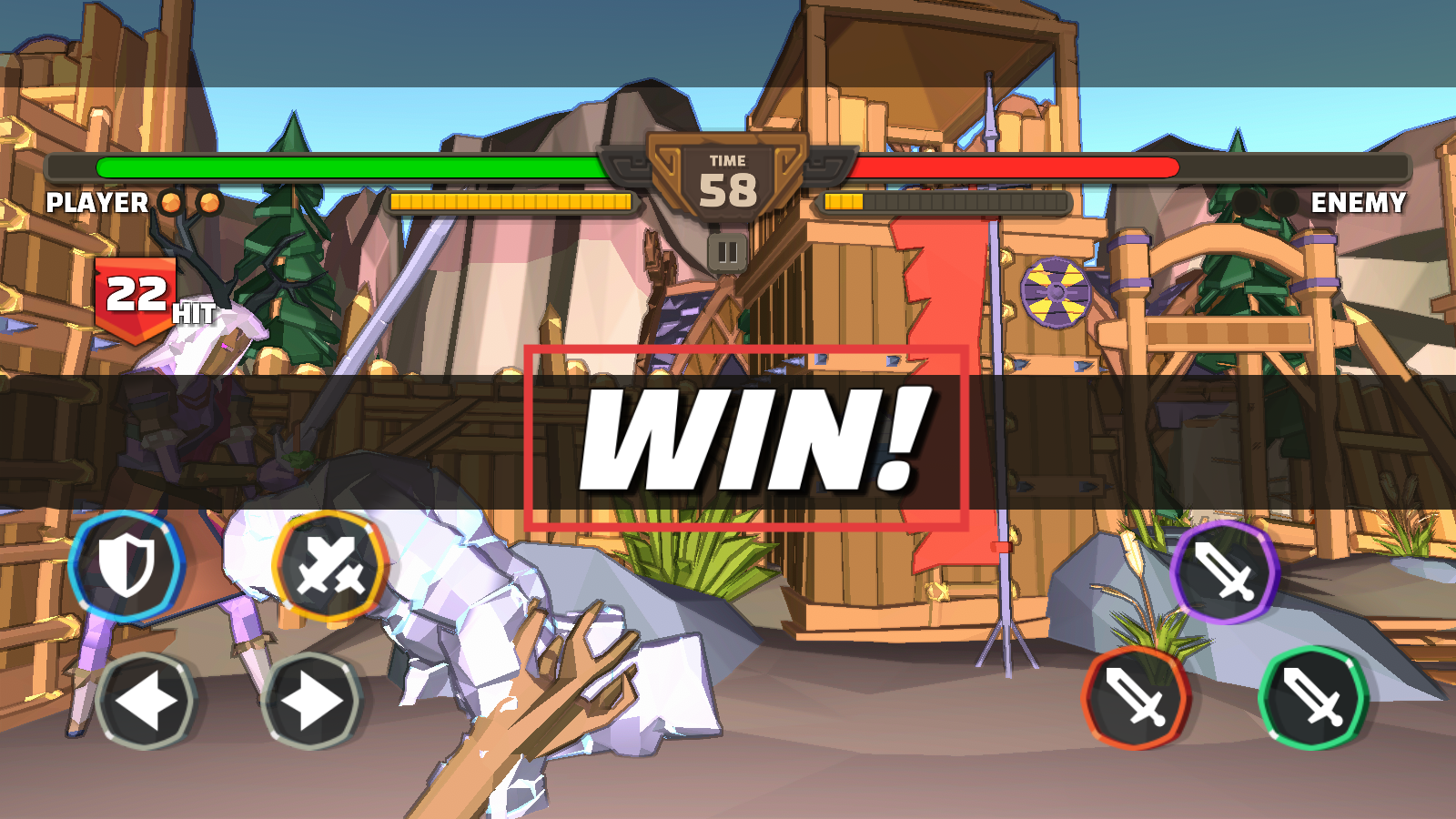 4、战斗胜利后屏幕显示【WIN!】,达成【22-HIT】连击数,可获取奖励并解锁下一关继续挑战。