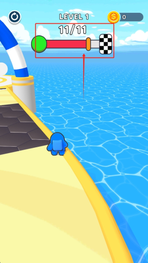 3、完成关卡:控制角色避开障碍,收集金币,直到进度条显示为满格,完成关卡。