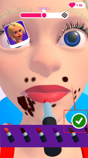 4、完成改造:选择正确的化妆品完成角色的时尚改造,点击“√”确认完成。
