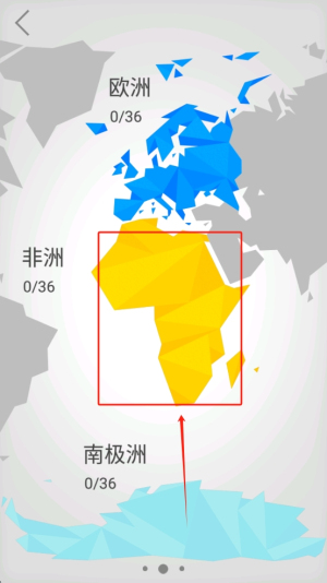 2、选择洲:在世界地图上,点击选择你想要挑战的洲,例如非洲。