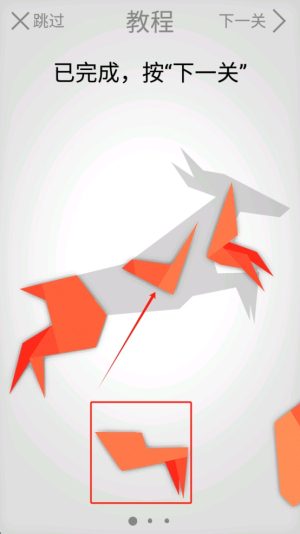 4、完成拼图:拖动拼图块完成拼图,然后点击“下一关”继续游戏。
