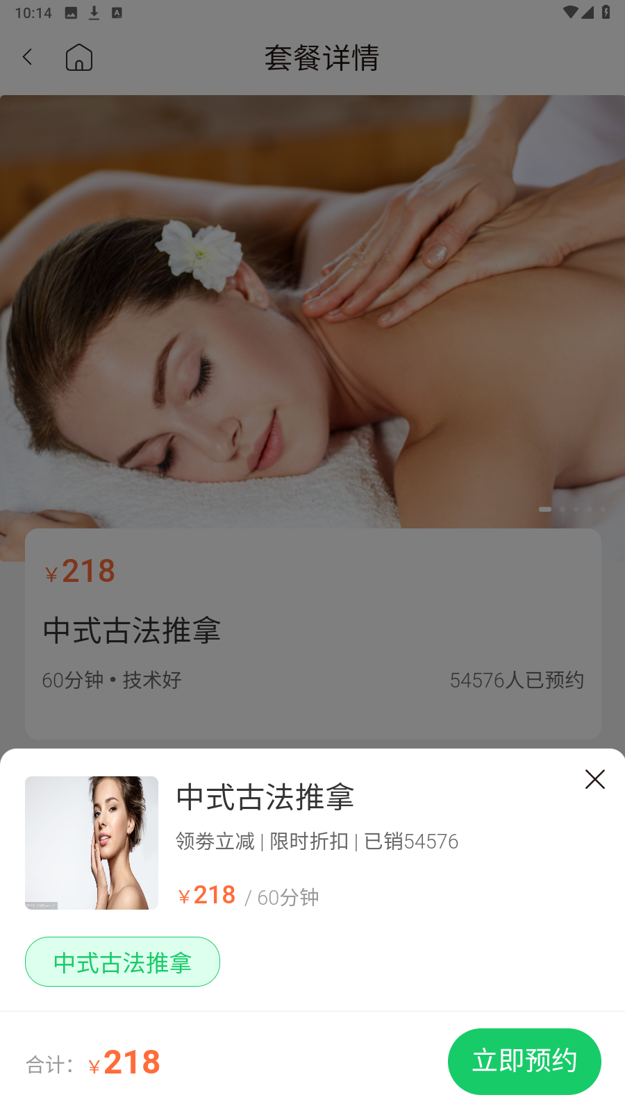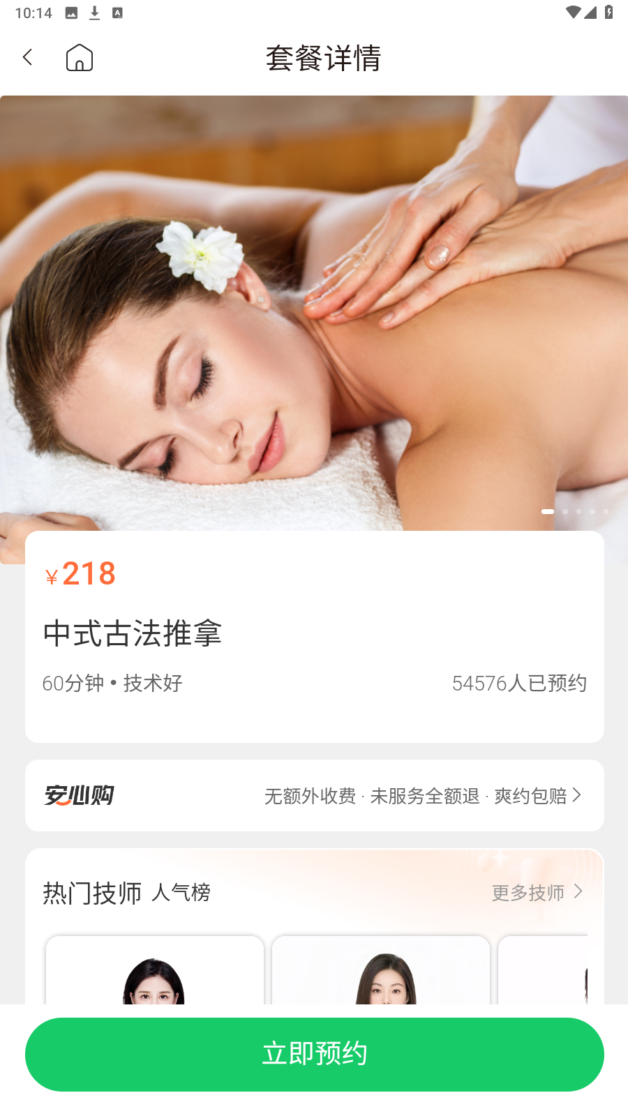2、在【套餐详情】页面,点击【立即预约】按钮。