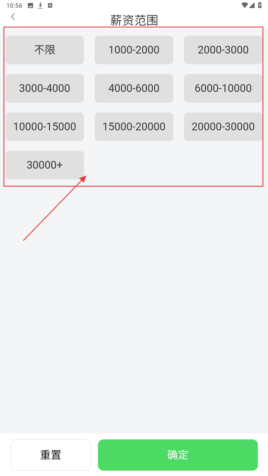 4、在【薪资范围】页面,选择目标薪资进行筛选即可。