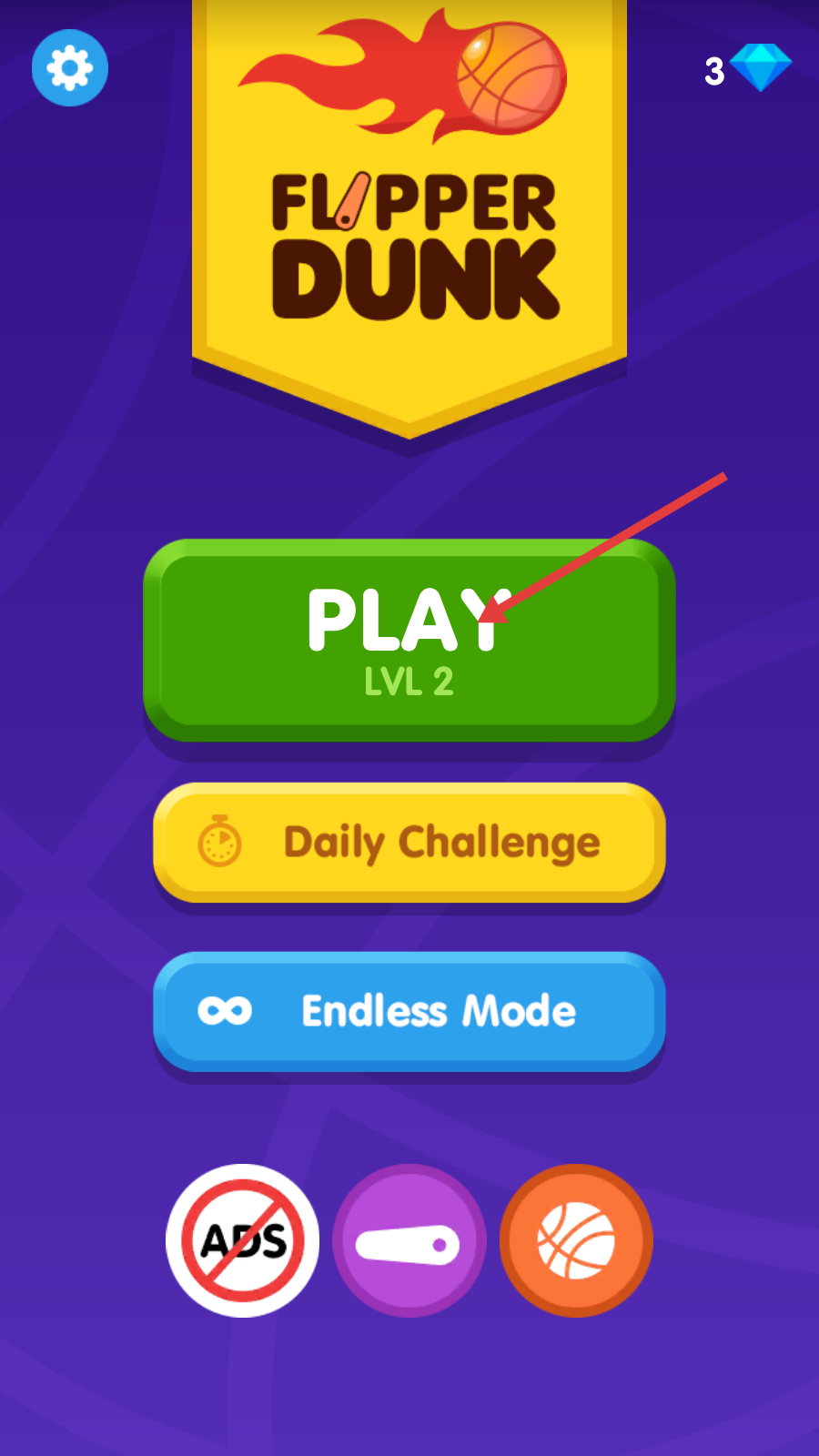 1、在【FLIPPER-DUNK】界面,点击绿色【PLAY-LVL-2】按钮,即可进入第二关篮球弹射挑战开启游戏。