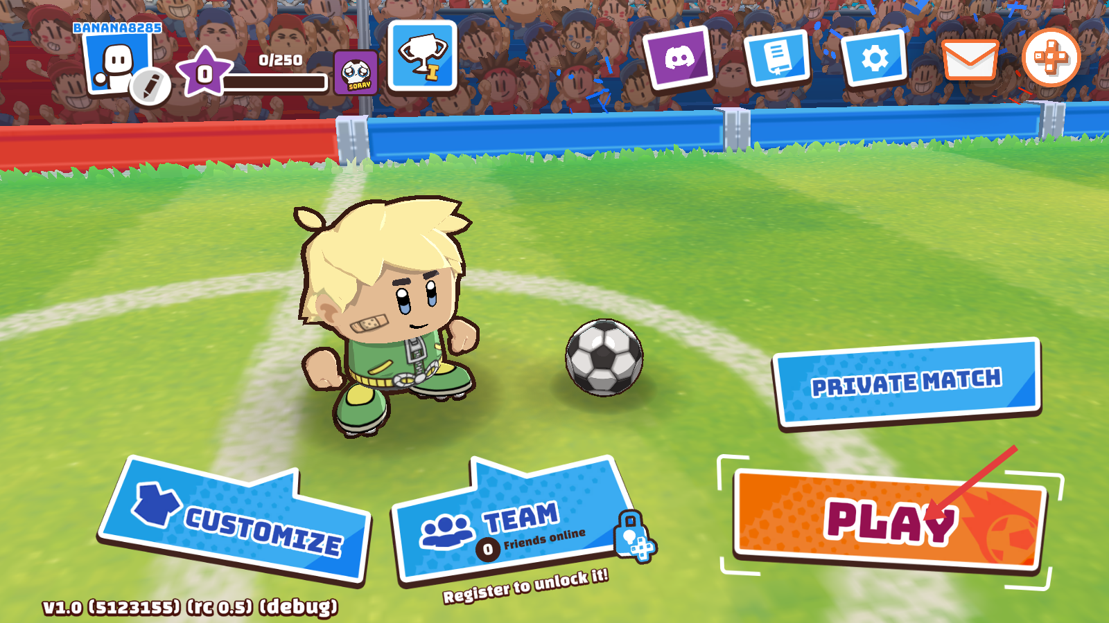 1、进入游戏主界面,点击橙色【PLAY】按钮开启对局,可先探索【CUSTOMIZE】等功能熟悉操作。