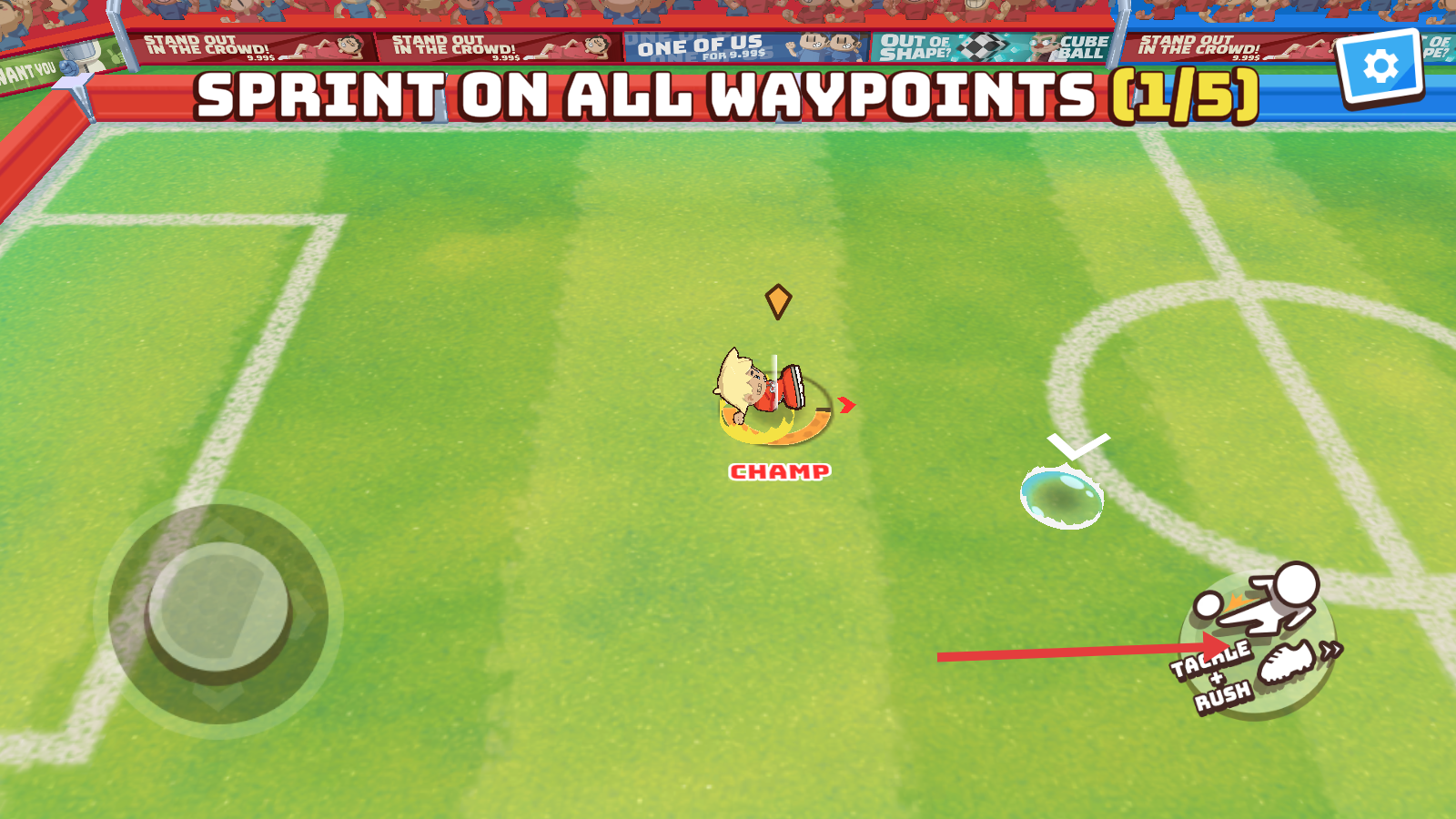 3、完成首步后触发冲刺,点击右下角【TACKLE-RUSH】加速,高效完成剩余【WAYPOINTS】踩点任务。