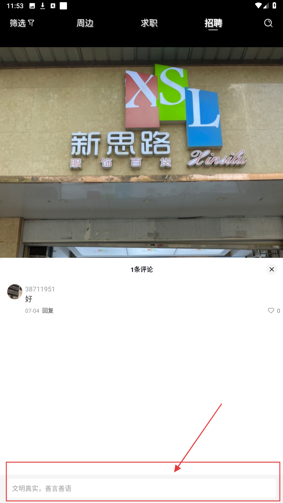 2、进入评论区,在输入框可留言咨询岗位细节或表达意向。