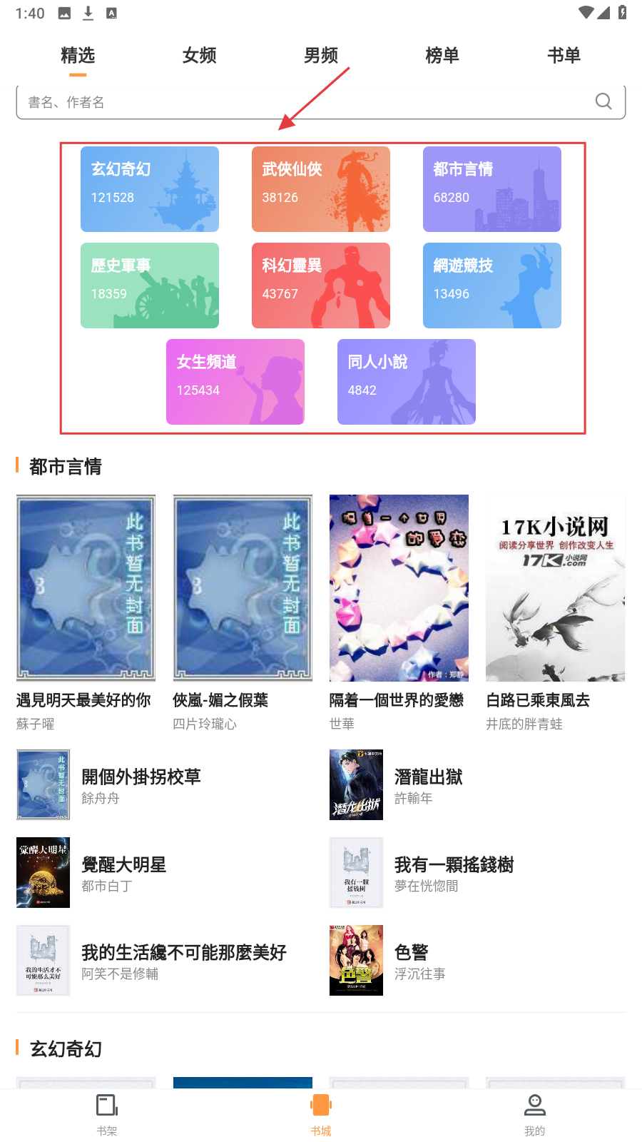 1、在【书城-男频】,选感兴趣分类如【玄幻奇幻】,进入该分类找书。