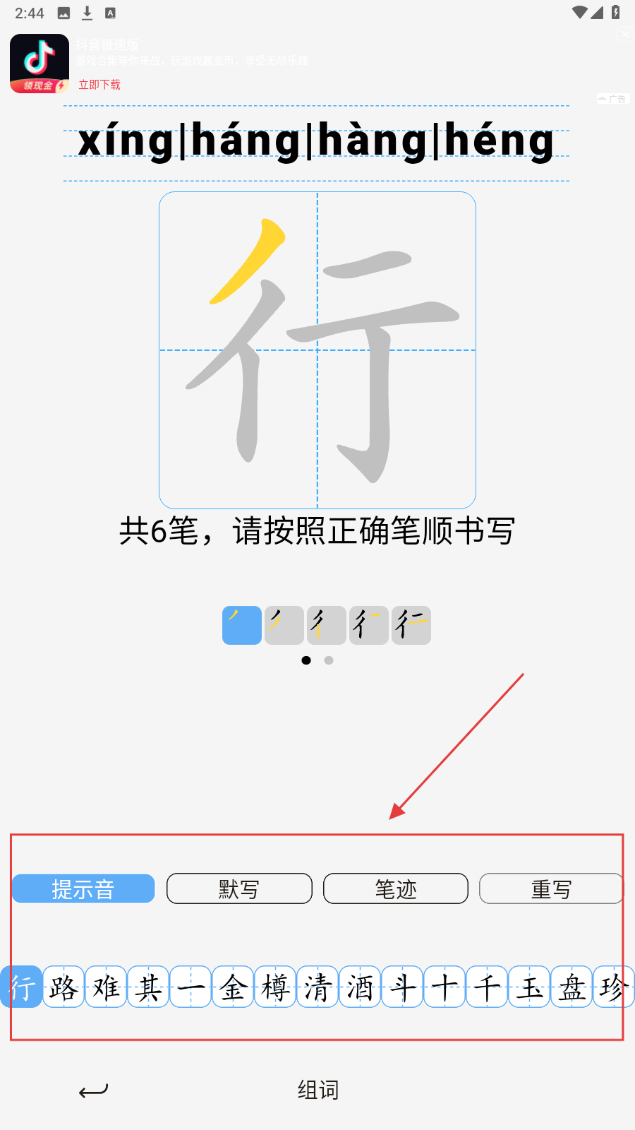 4、练字阶段,依据笔顺指引书写,巧用【提示音】【默写】功能巩固。
